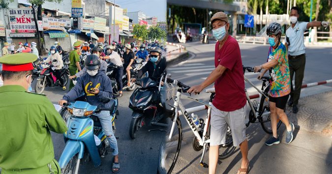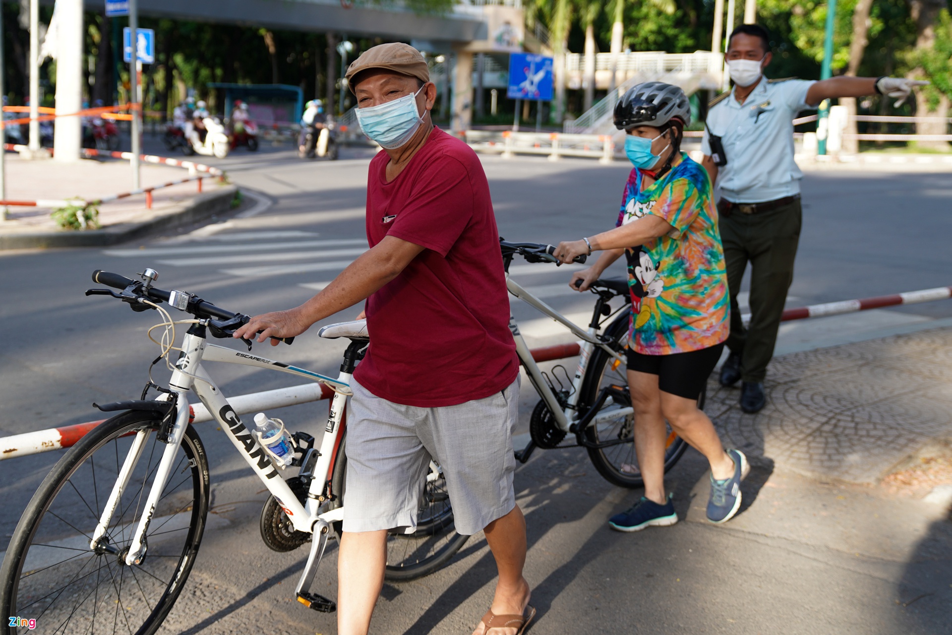 Lực lượng chức năng ghi nhận nhiều trường hợp đi xe đạp, đi bộ tập thể dục tại quận Phú Nhuận trong ngày 10/7. Ảnh: Chí Hùng.