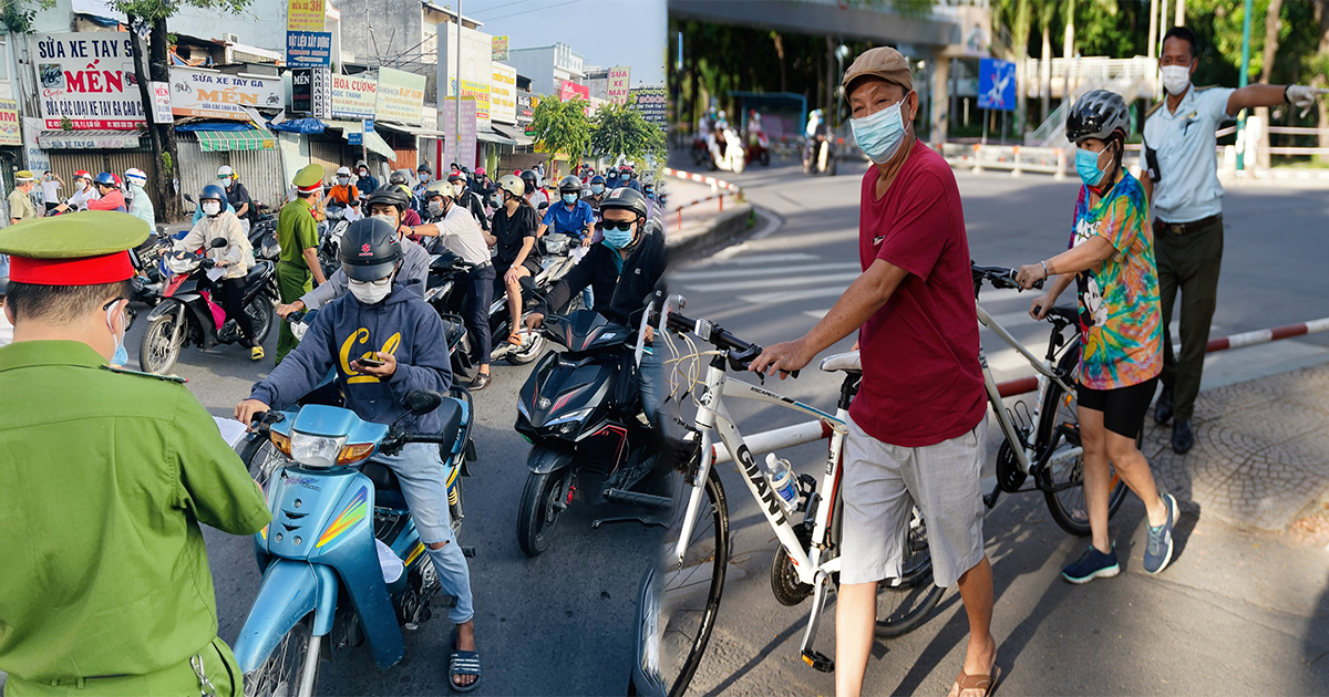 Từ 0 giờ ngày 9.7, TP.HCM giãn cách xã hội theo Chỉ thị 16 của Thủ tướng. Người dân TP.HCM được yêu cầu ở nhà, chỉ ra ngoài khi thật sự cần thiết. Sau 2 ngày nhắc nhở, đến hôm qua (11.7), các lực lượng chức năng của TP.HCM đã tăng cường xử phạt người dân ra đường không lý do chính đáng. Đến sáng nay (12.7), dòng người và xe lại ùn ùn ra đường, tới chốt kiểm soát thì ai cũng có “giấy thông hành”.