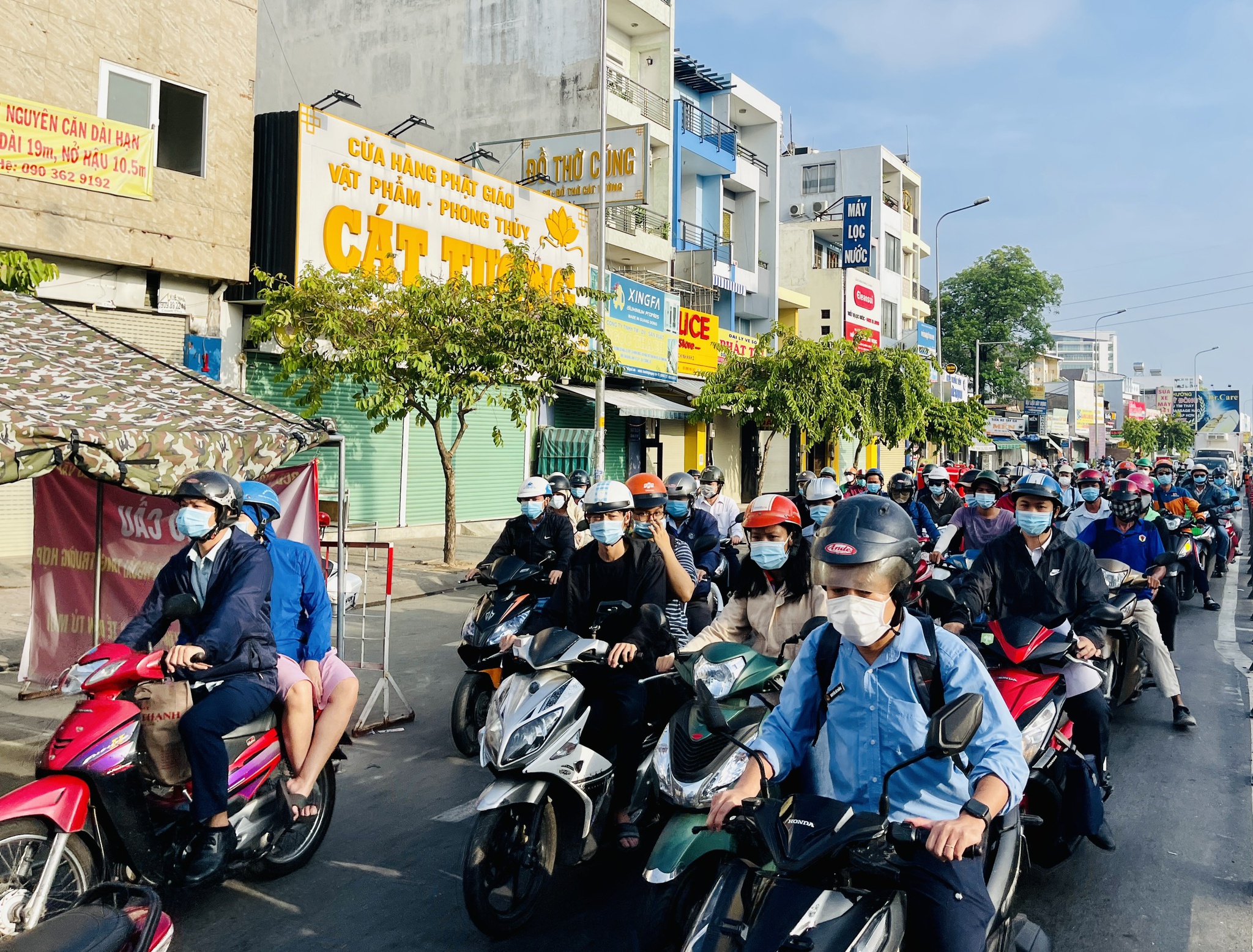 Dòng phương tiện bắt đầu đông đúc từ 7 giờ sáng bất chấp TP.HCM đang giãn cách xã hội chống dịch Covid-19
