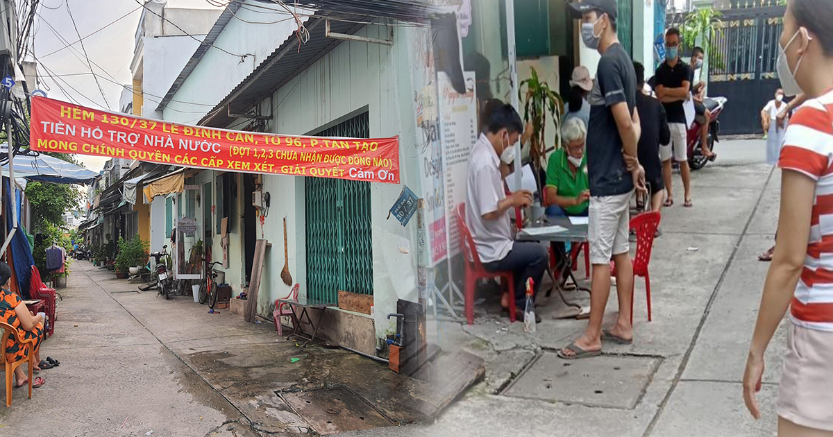 Những ngày vừa qua, Báo Thanh Niên nhận được nhiều phản ánh của một số người dân tại một khu vực thuộc hẻm 130 đường Lê Đình Cẩn, tổ 96, P.Tân Tạo, Q.Bình Tân (TP.HCM) về việc yêu cầu chính quyền địa phương giải thích, giải quyết tiền hỗ trợ Covid-19. Cư dân tại đây cũng treo băng rôn với nội dung chưa nhận được tiền hỗ trợ cả 3 đợt.