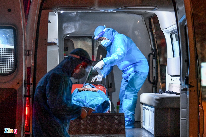 Một bệnh nhân C.ovid-19 chuyển biến nặng được nhân viên y tế quận Gò Vấp chuyển lên Bệnh viện Bệnh Nhiệt đới TP.HCM. Ảnh: Duy Hiệu.