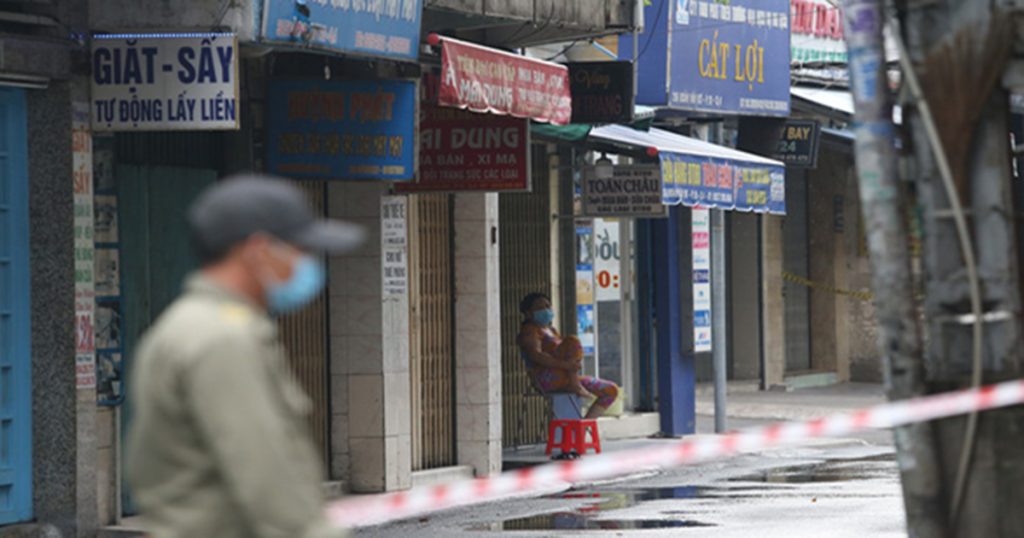 Hiện nay trên địa bàn thành phố nhiều khu vực đã bị phong tỏa để tầm soát dịch bệnh, trong ảnh là một con hẻm tại quận 4 bị phong tỏa – Ảnh: LÊ PHAN
