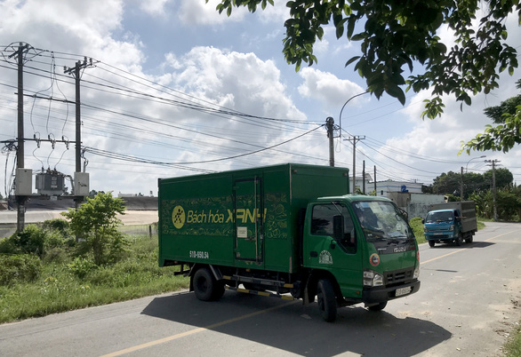 Xe chở hàng được yêu cầu quay đầu tại đường dẫn vào ấp Tân Thới 2, huyện Hóc Môn – Ảnh: LÊ PHAN