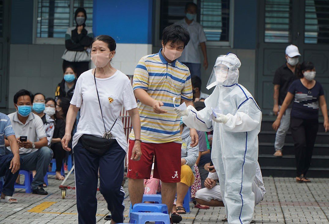 Người dân lấy mẫu xét nghiệm CO.VID-19 tại phường Hiệp Tân (quận Tân Phú, TP.HCM) ngày 28-6 – Ảnh: D.PHAN