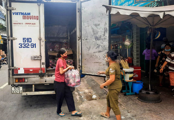 TP.HCM thống nhất quan điểm kiểm soát chặt chẽ người ra vào thành phố để hàng hóa lưu thông, không bị ách tắc. Trong ảnh: Xe chở hàng miễn phí chở nhu yếu phẩm tặng bà con ở TP.HCM trong mùa dịch – Ảnh: KIM ÚT