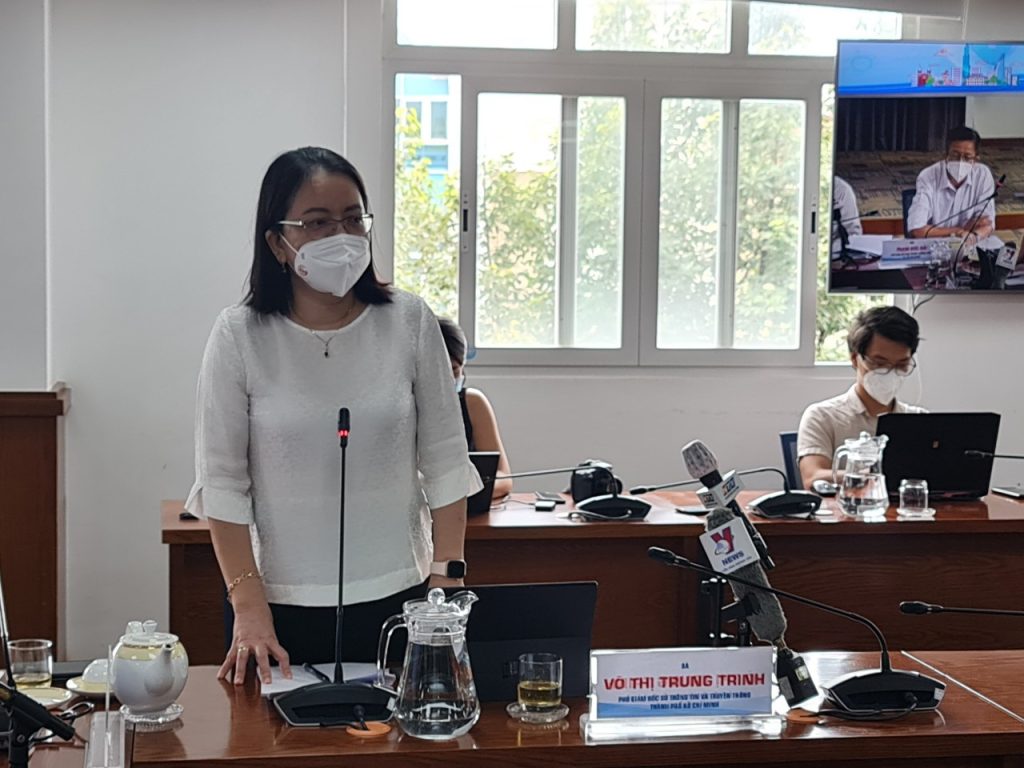 Bà Võ Thị Trung Trinh, Phó giám đốc Sở TT-TT TP.HCM, phát biểu tại buổi họp báo