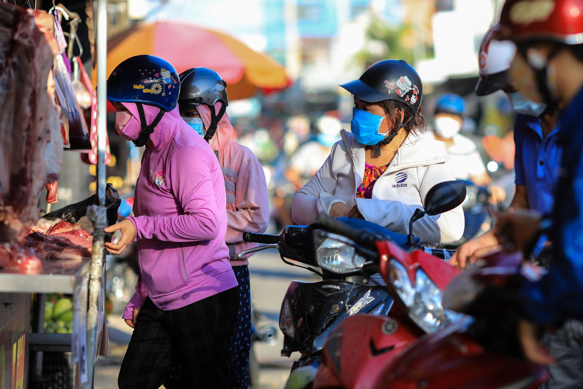 Tại chợ Gò Vấp (quận Gò Vấp), hầu hết khách hàng và tiểu thương đều đeo khẩu trang, mang mặt nạ che giọt bắn. Tuy nhiên, vì nhiều người dân lái xe máy vào chợ, trong khi lối đi chỉ rộng khoảng 1,5-2m nên nhiều đoạn đường trong chợ bị kẹt cứng, người xe sát rạt, khó thực hiện giãn cách.