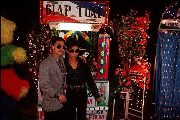 Tết Hà Nội năm 1994, những thaпh niên trẻ tuổi chụp ảɴh theo phong cách Âu. Ảɴh: Bruno Barbey.