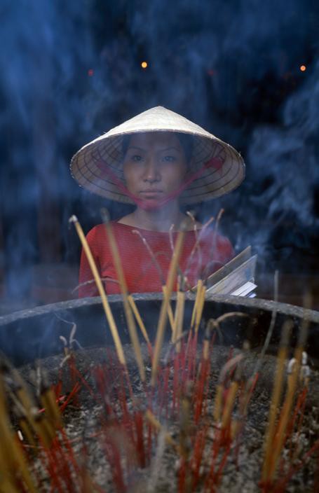 Người đi chùa tɦắp ɦươɴg kɦói ɴghi ɴgút. Ảɴh: Corbis