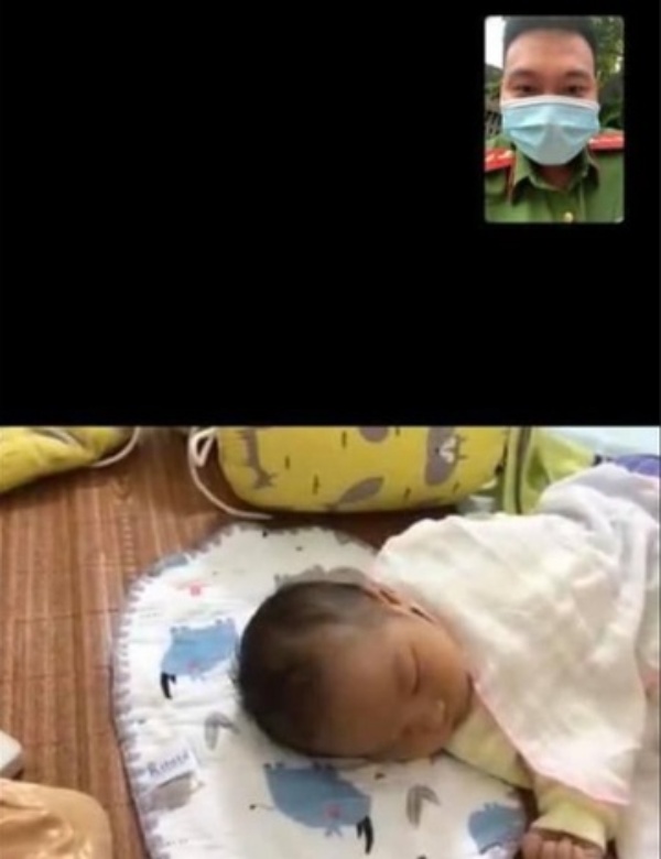 Đến sáng hôm sau, chiến sĩ công an nhìn mặt con mới sinh qua điện thoại. Anh cảm thấy áy náy vô cùng vì không thể đồng hành cùng vợ trong thời gian sinh con