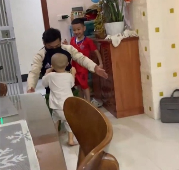 Cách đây không lâu, đoạn clip 1 ông bố trở về nhà sau một tuần làm nhiệm vụ, đã khiến nhiều người cảm động. 2 đứa trẻ đang chơi trong nhà ùa ra ôm bố rất tình cảm. Bé lớn hét lên “Ba về” rồi chạy ngay ra sà vào lòng bố, bé nhỏ cũng hớn hở lững chững bước chân ra mừng.