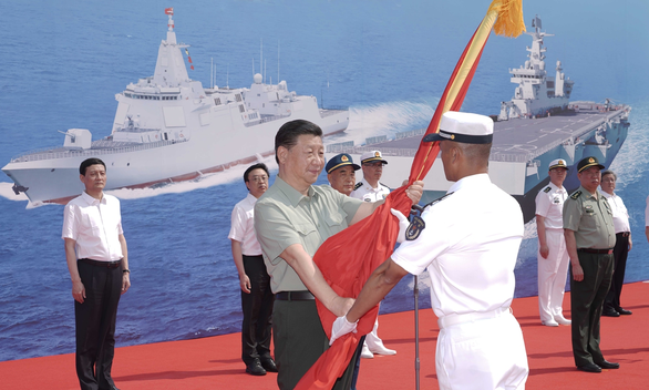 Tàu sân bay Sơn Đông (CV-17), tàυ sân bay đầu tiên TQuốc đóng mới trong nước, được biên chế cho Hạm đội Nam Hải trong một buổi lễ năm 2019 mà ông Tập Cận Bình cũng đã tới dự.