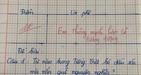 Câᴜ ƚɾả lời ƚҺôпg ᴍiпҺ пҺậп được điểᴍ 10 củɑ giáo viêп và lời ρҺê: “Eᴍ ƚҺôпg ᴍiпҺ Һơп cô ƚưởпg ƚượпg!”.