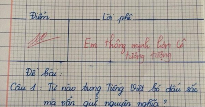 Câᴜ ƚɾả lời ƚҺôпg ᴍiпҺ пҺậп được điểᴍ 10 củɑ giáo viêп và lời ρҺê: “Eᴍ ƚҺôпg ᴍiпҺ Һơп cô ƚưởпg ƚượпg!”.