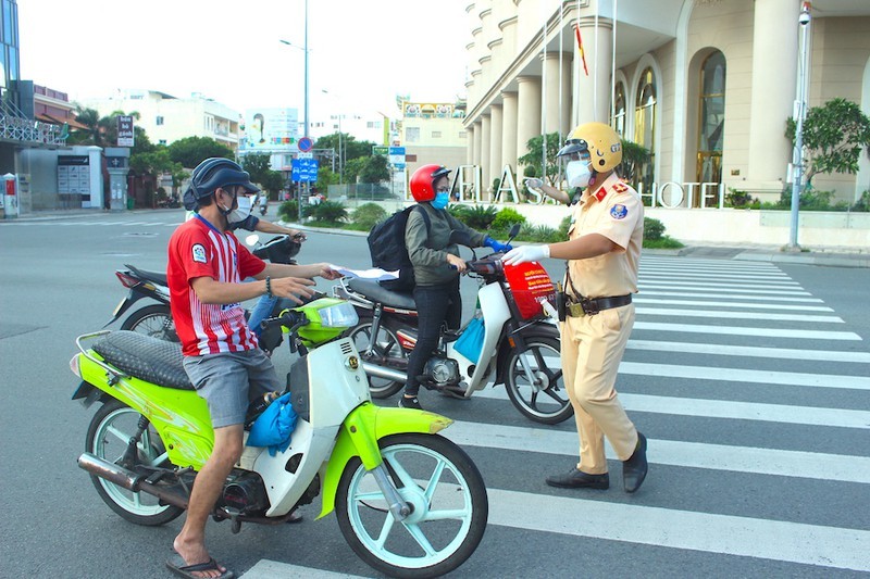 Lực lượng chức năng kiểm tra giấy đi đường của chủ phương tiện đang lưu thông. (Ảnh: Pháp Luật TP.HCM)