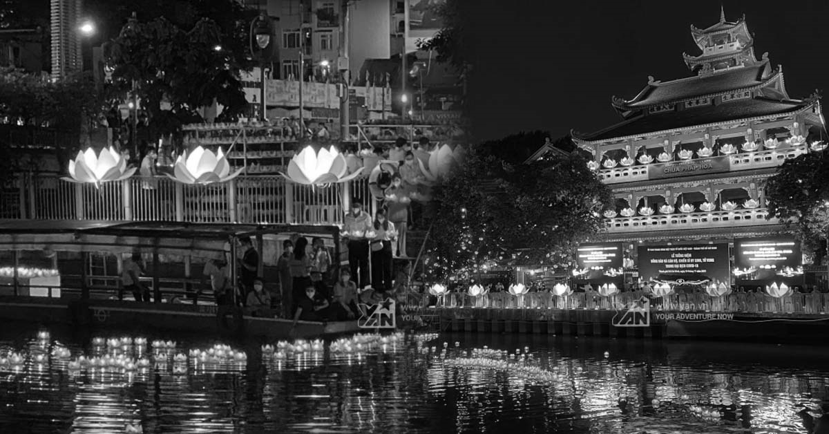 Hàng trăm chiếc hoa đăng trôi theo dòng nước, cầu mong vong linh của những người đã ra đi vì Covid-19 sớm về miền cực lạc. Có sự ra đi nào còn cô độc hơn thế, không người thân bên cạnh, không có nổi một lễ an táng. Hi vọng rằng, ngay lúc này đây, thân nhân của những người xấu số sẽ được an ủi phần nào.