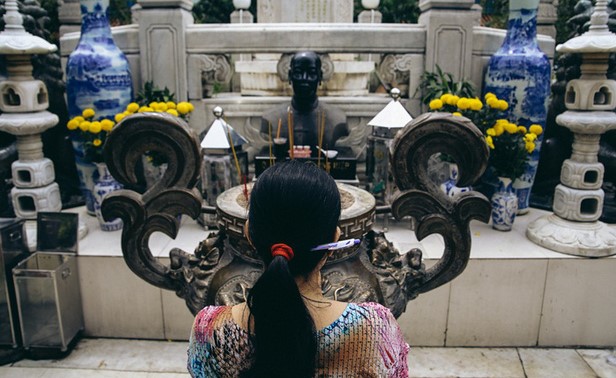 Tiểu thương vẫn hàng ngày hương khói cho pho tượng vì không chỉ tri ân ông Quách Đàm đã dựng nên ngôi chợ, mà họ còn xem ông như thần tài của giới buôn bán nơi này.