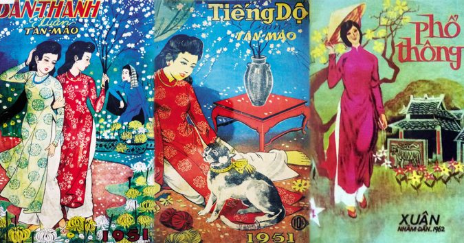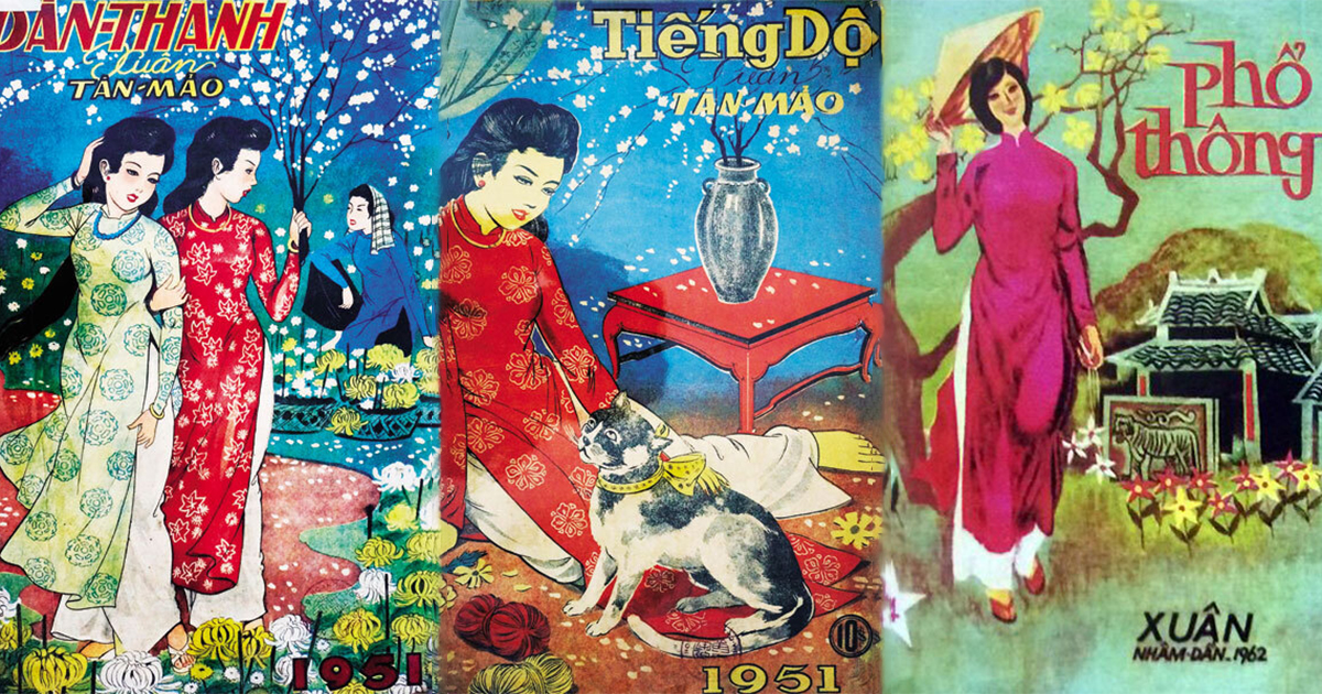 Qua nét cọ của các họa sĩ, Ƅìa Ƅáo xuân Sài Gòn thập niên 1950 luôn có hình ảnh người đẹp mặc áo dài, thướt tha du xuân, vãn cảnh với mai đào rực rỡ.