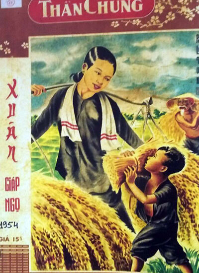 Tranh trên báo xuân Giáp Ngọ 1954 của Ƅáo Thần Chung. Bức tranh toát lên nét hồn hậu của làng quê miền Tây.