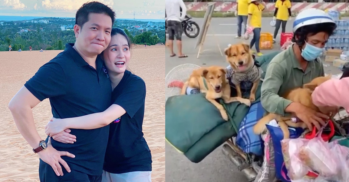 “Nhìn hai anh chị trong clip đèo theo cả bầy cún cưng về quê mà thấy thương ghê.”