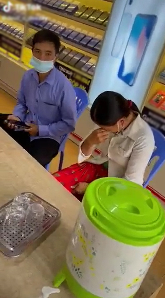 Một TikToker chia sẻ đoạn video ghi lại cảnh vợ chồng vào cửa hàng để sắm điện thoại. Hai người ăn mặc khá bình dân, gương mặt khắc khổ. Trong khi nhân viên đang lấy đồ, chị vợ đã bật khóc, phải lấy tay lau vội nước mắt. Dường như, người phụ nữ này rất vui khi nhận được món quà từ chồng.