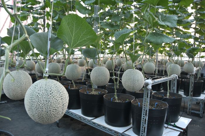 Được biết, đây là vườn dưa lưới của gia đình anh Nguyễn Công Bằng – chị Phạm Thị Phượng. Sau khi có nhà riêng, vợ chồng anh chị đã quyết định trồng dưa lưới trên sân thượng để vừa thoả đam mê vừa “hô biến” không gian sống gia đình mình thêm xanh mát và trong lành. Ảnh: Hoa Nữ/Thanh Niên