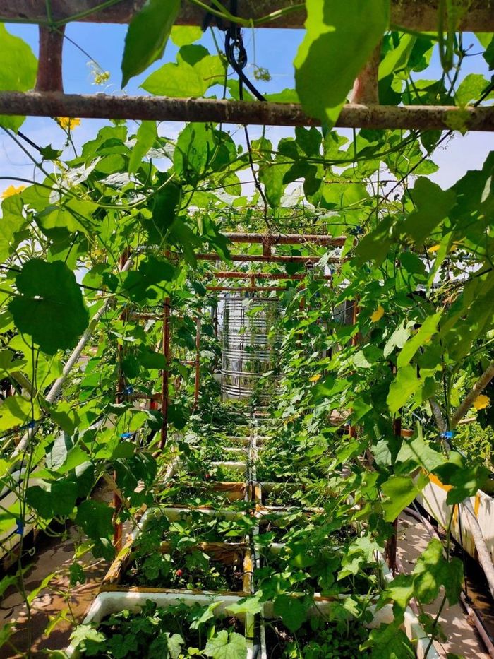 Ông xã của chị tự thực hiện mọi việc, từ làm giàn, lắp hệ thống tưới tiêu cho cây. Ảnh: VnExpress