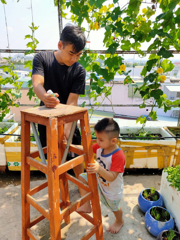 Hiện tại, nếu không phải giãn cách xã hội vì dịch bệnh thì gia đình chị Trang cũng ít đi chơi bên ngoài bởi thường dành thời gian cho khu vườn nhỏ của mình. Và, những ngày vừa qua, khi TP.HCM phải áp dụng giãn cách xã hội để ngăn ngừa dịch bệnh thì khu vườn trên sân thượng của anh chị lại càng có “giá trị”, bởi đấy là không gian xanh cho cả nhà cùng thư giãn, không bị tù túng vì phải ở trong nhà quá lâu.