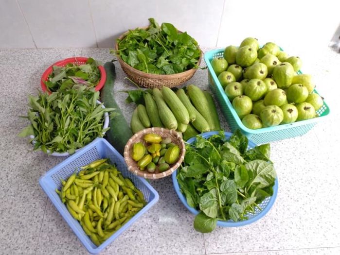 Sản phẩm rau củ quả tươi xanh chị Trang thu được từ “khu vườn trên cao” của gia đình mình. Ảnh: NVCC