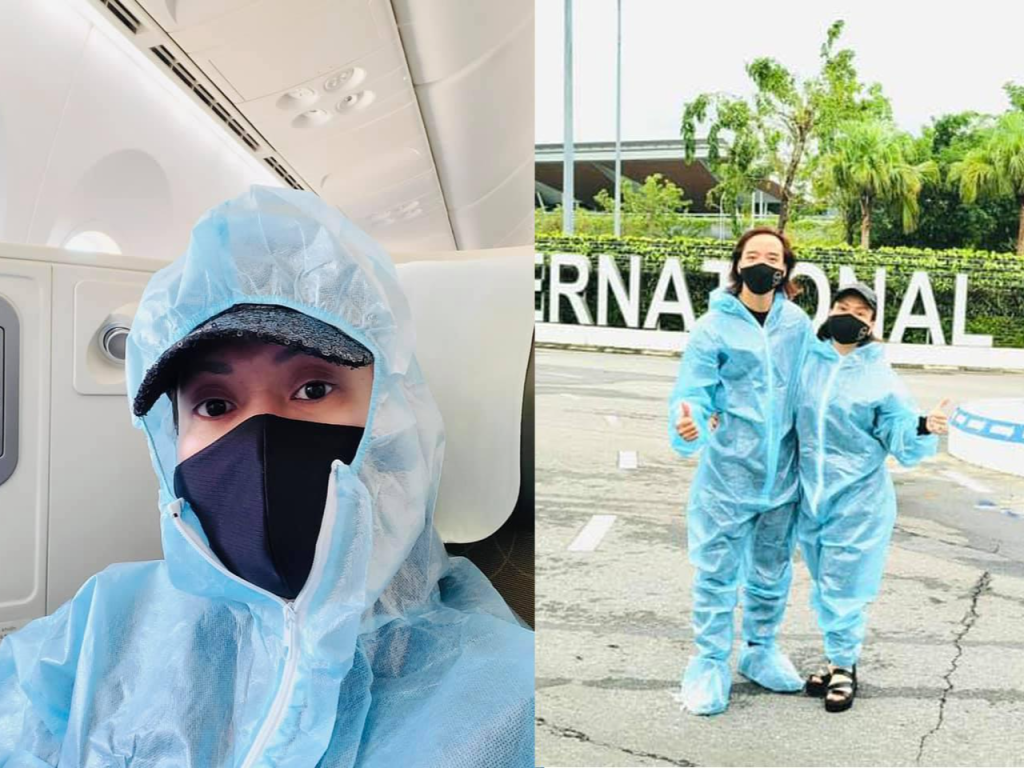 Trong hình ảnh được chia sẻ, vợ chồng nữ danh hài đã xuất hiện tại sân bay Đà Nẵng, cả hai mặc bảo hộ và đeo khẩu trang đầy đủ khi di chuyển. Chia sẻ với Thanh Niên, Việt Hương cho biết cô và ông xã đang thực hiện cách ly y tế theo đúng quy định cho người từ trước ngoài về nước trước khi trở lại TP.HCM.
