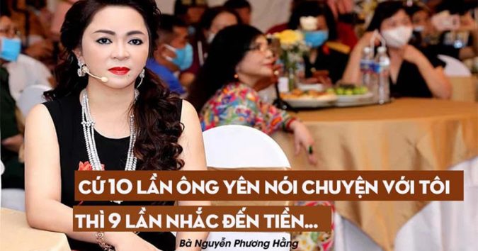 Bà Nguyễn Phương Hằng cũng tố cáo rằng trong một thời gian rất ngắn ông Võ Hoàng Yên “đã quét sạch tiền” của bà. Bởi 10 lần nói chuyện với bà thì 9 lần ông Yên nhắc đến tiền.