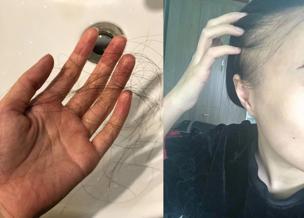 Mái tóc dài, niềm kiêu hãnh của nữ MC cũng rụng dần. (Ảnh: Soha)