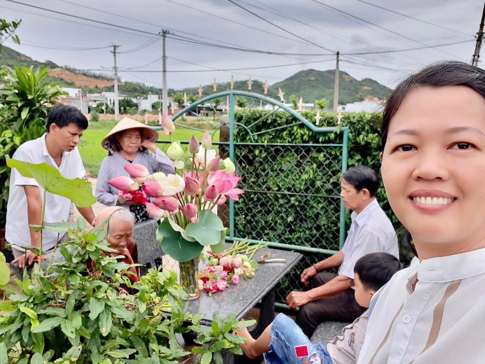 Những ngày nghỉ, cả gia đình thường cùng làm vườn và cắt hoa cắm bình. Mỗi lúc vậy, chị Vui, mẹ chồng và bà nội đi dạo vườn ngắm hoa lá, cười nói vì những chậu đã chật kín cả sân. Lúc đó cụ Hơn nói “Hoa đẹp đó mà để hết cái sân vầy rồi khi nội chết làm sao”, rồi cười.