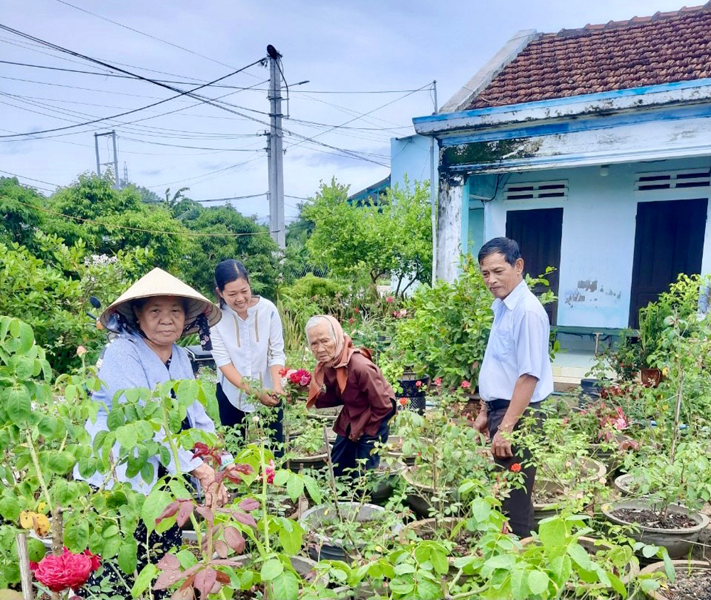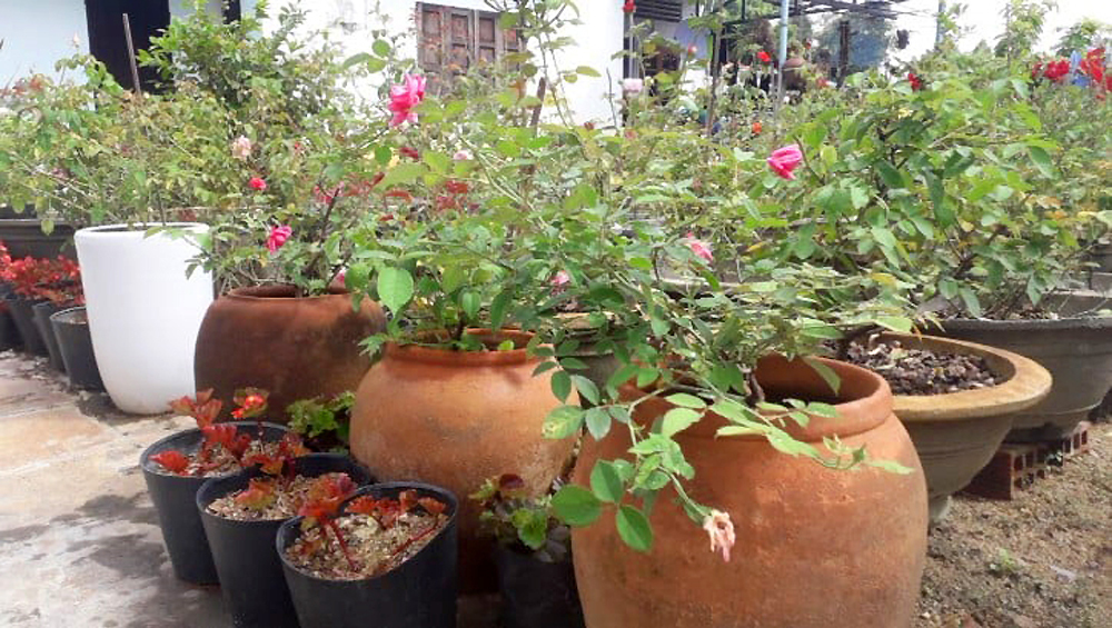 Chị Vui để ý thấy trong nhà có vài cây hồng tố nữ ngày nào bà nội cũng ngắm, bố mẹ chồng thích thú khi cây nảy lộc, đơm hoa. Vốn thích hoa lá, nên nàng dâu mua thêm vài chục chậu hồng về cùng chăm.