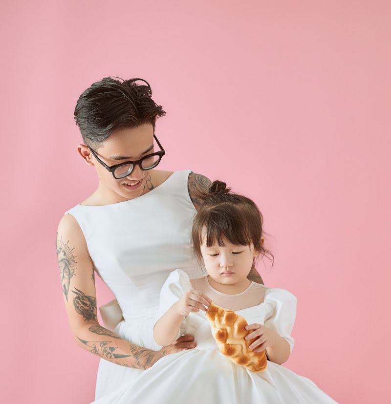 “Bạn ấy cực kỳ thương con. Lúc mới đầu khi thử váy cưới, bên mình chỉ định lên ý tưởng mặc vest còn bé gái sẽ mặc váy cô dâu thôi. Tuy nhiên, em bé cứ liên tục đòi mẹ và thích được mặc váy cưới với mẹ.