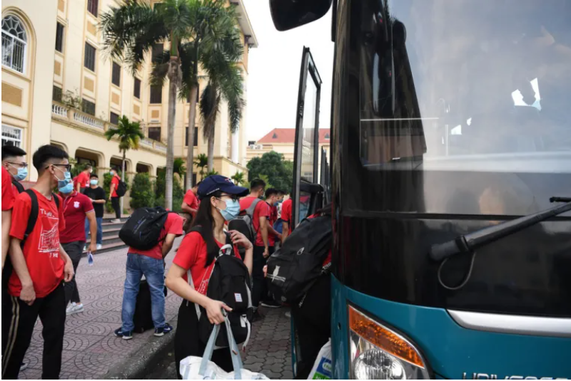 Đoàn sinh viên Đại học Y dược Hà Nội lên đường vào TP.HCM tiếp viện chống dịch. (Ảnh: Dân Trí)