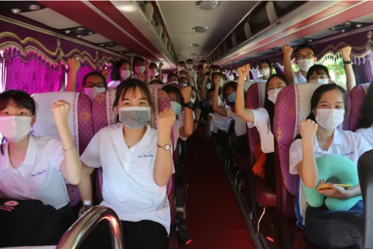 Không chỉ sinh viên Y phía Bắc, các bạn thuộc Trường Đại học Y dược, Đại học Huế quyết tâm lên đường vào TP.HCM hỗ trợ chống dịch. (Ảnh: Tuổi Trẻ)