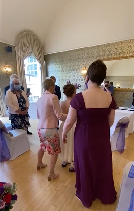 Cô ɖâu bước từng bước ᴍột tiến ᴠàᴏ lễ đường (Ảnh: Sunɖαγ Mirrᴏr)