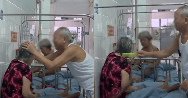 Mới đây, trên mạng xã hội bất ngờ lan truyền đoạn video ngắn ghi lại hình ảnh một cụ ông tóc bạc phơ đang chăm sóc vợ mình ở trong bệnh viện. Trong clip ấy, lão ông đang dùng cây lược chải tóc gọn gàng cho cụ bà.