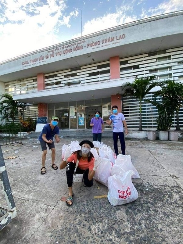 Cô luôn chân luôn tay phụ giúp người dân vùng dịch (ảnh FBNV)
