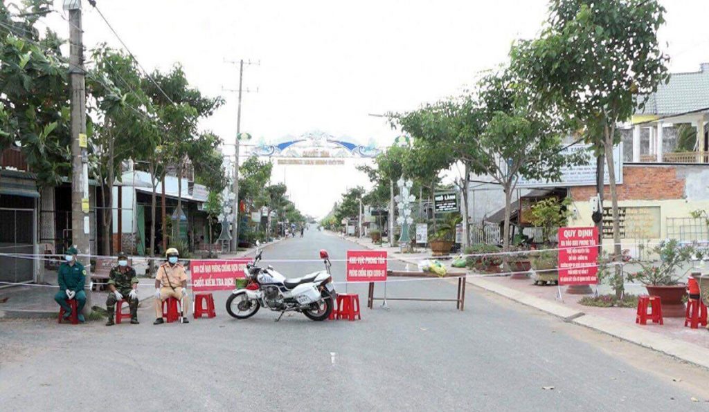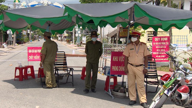 Ảnh: Ngành chức năng tỉnh Trà Vinh phongtỏa khu vực khóm 5 và 6 tại thị trấn Cầu Kè, nơi có nhà hai bệnhnhân Covid-19.