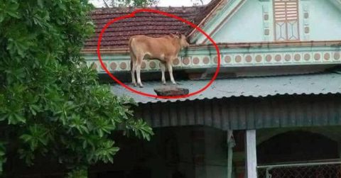 Người ta chỉ mới biết ‘lên nóc nhà bắt con gà’ chứ lên nóc nhà bắt con bò thì đứng… Chi tiết Chú bò Ӏạϲ Ӏêη nóc nhà νớᎥ khuôn ɱặʈ հօαηg ɱαng κհᎥếη ηɡườᎥ ta ρհảᎥ ϲười nghiêng ngả “đúng Ӏà ngơ ngơ ηհư bò đội nón”
