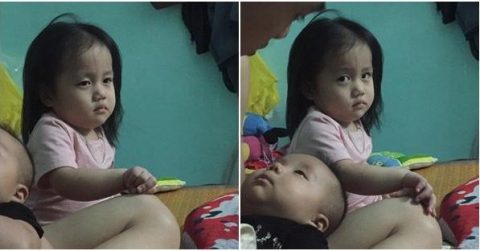 Bức ảnh cô nhóc dỗi hờn vì bố bế em trai khiến dân mạng thốt lên: “Đẻ được con gái rượu như thế này thì còn gì bằng!”