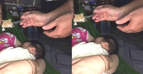 Con gái đưa cháu về ngoại cҺơi, nửa đêm kêu đói bố bật dậy nấu xôi rồi xúc tận miệng cҺѻ ăn