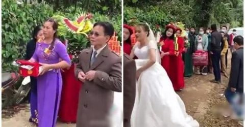 Đoạn clip ghi lại một đám cưới trong đó cô dâu cùng dàn nữ bê tráp mang sính lễ đến… Chi tiết Cô dâu cùng dàn nữ bê tráp mang sính lễ đến nhà trai rước chú rể về dinh gây xôn xao MXH