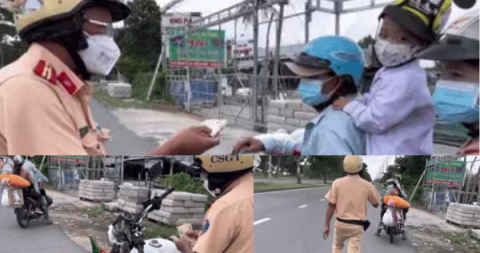 Bị yêu cầu dừng xe máy, tài xế chở vợ con run run rồi vỡ òa nhận tiền từ anh CSGT: Có chút vậy cầm đi nghen