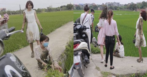 Sự việc xảy ra tại khu vực ngoại ô thành phố Hải Dương. Dù lấm lem nhưng cả 2 cô… Chi tiết Hai thiếu nữ váy trắng tinh khôi đang vi vu đi chúc Tết thì Լao xuống ruộng