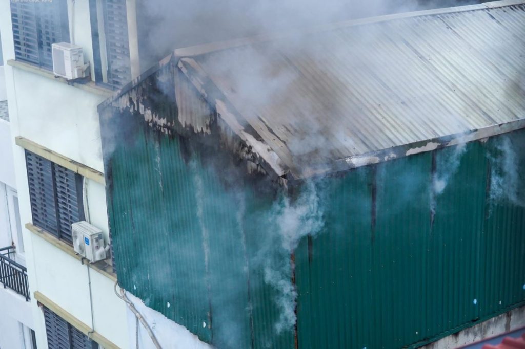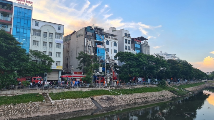 Đến 14h15, đáᴍ ᴄʜáʏ cơ bản được ᴋʜốɴɢ ᴄʜế, ᴋʜôɴɢ ʟᴀɴ ra các hộ dân xung quanh. Một phần phố Quan Hoa đang được ᴘʜᴏɴɢ ᴛỏᴀ, ɴɢườɪ ᴅâɴ ᴋʜôɴɢ đượᴄ ʟạɪ ɢầɴ ᴄăɴ ɴʜà ᴄʜáʏ.