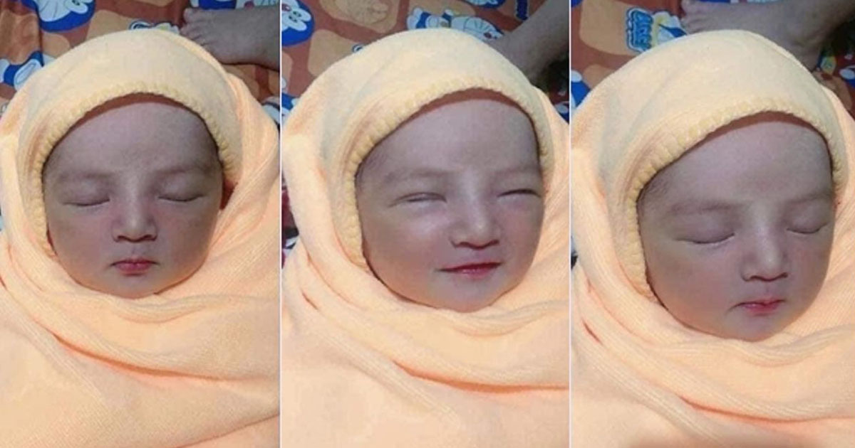 Theo đó, em bé sơ sinh đang ngủ, được quấn trong chiếc khăn màu vàng, gương mặt đáng yêu, nét nào ra nét nấy, đặc biệt là sống mũi cao vút, đôi môi đỏ như son.