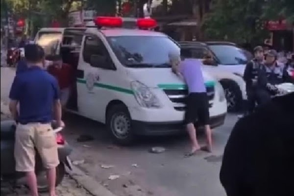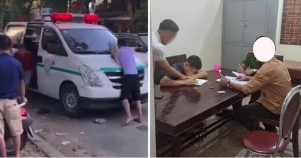Ngay lập tức người dân đã gọi xe của Bệnh viện Đa khoa 115 Nghệ An đến đưa người kia đi, tuy nhiên nam thanh niên này đã chặn phía trước xe. Người dân ra kéo, giữ Trung để xe di chuyển thì bị nam thanh niên này vung tay.